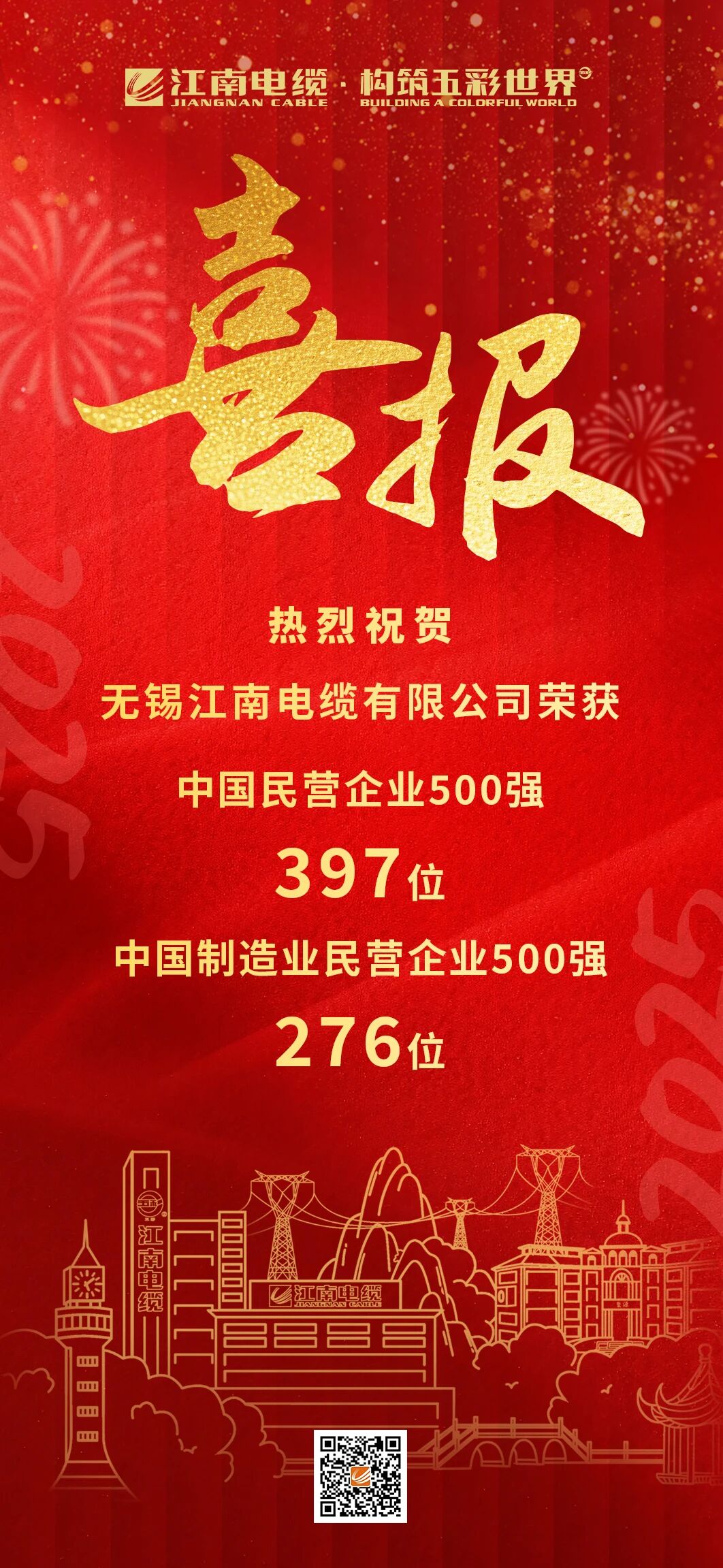 【喜報(bào)】江南電纜榮獲2025中國(guó)民營(yíng)企業(yè)500強(qiáng)、中國(guó)制造業(yè)民營(yíng)企業(yè)500強(qiáng)!
